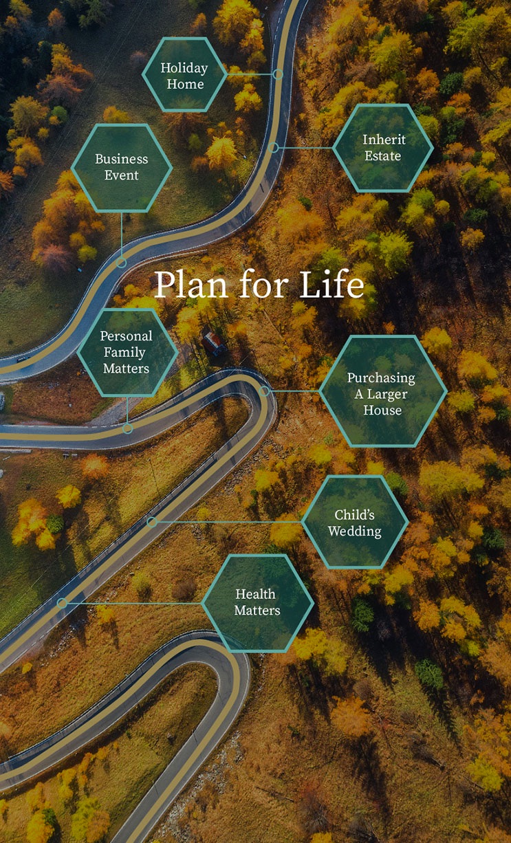 While everyone is different we all have goals that are personal to us. What stands between us and those goals are the challenges that life throws at us but you can plan for most these. The Plan for Life process aims to eliminate the element of surprise and allow you to enter each of your life stages in the full knowledge of what to expect having planned for it with your adviser.